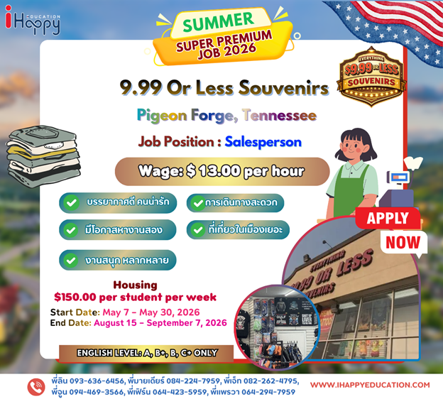 9.99 Or Less Souvenirs in Pigeon Forge offers a great opportunity for Work and Travel students who want to gain customer service experience in a lively tourist destination. Located near popular attractions like Dollywood and the beautiful Great Smoky Mountains National Park, the store welcomes visitors from across the United States and around the world. Students can improve their communication skills, learn retail operations, and interact with diverse customers every day. Working in such a busy and friendly environment allows students to experience American tourism culture while earning income and building valuable international work experience.