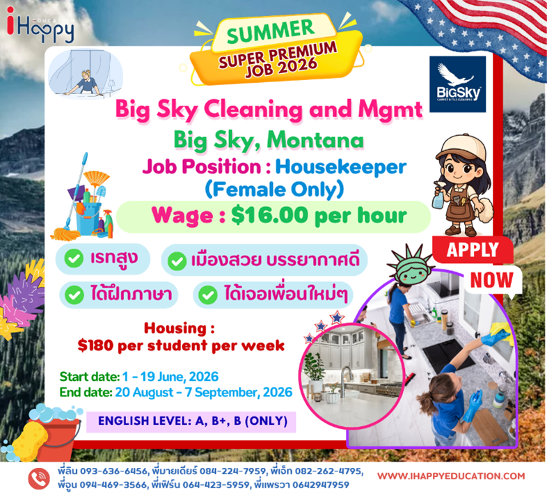 Working for Big Sky Cleaning & Mgmt. Inc. offers the opportunity to live and work in one of Montana’s most beautiful mountain resort communities. Based in Big Sky, employees are surrounded by breathtaking scenery, fresh alpine air, and year-round outdoor recreation including skiing, hiking, and sightseeing. The company supports a welcoming, team-oriented work environment while providing hands-on experience in hospitality and property services. This position is ideal for individuals looking to build strong work skills, enjoy an active mountain lifestyle, and be part of a close-knit, international resort community while creating lasting memories in Big Sky, Montana.