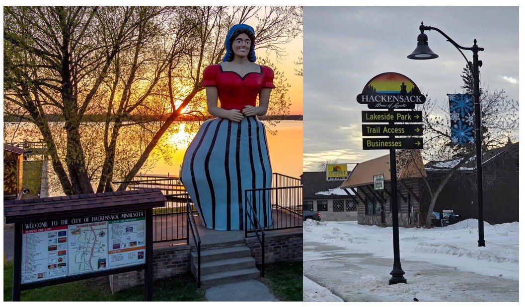 We’re in the Heart of Minnesota’s 10,000 lakes There is no rush hour in Hackensack ±no massive traffic jams where you sit and move only inches every five or ten minutes. No sirens Hackensack is located 50 minutes north of Brainerd, 50 minutes south of Bemidji and 30 minutes from the headwaters of the Mississippi River right in the very heart of lake country. In fact, there are 127 lakes in a 10-mile radius from Hackensack; the Foothills State Forest; the Chippewa National Forest; the North Country walking trail; Deep Portage Learning Center; Northern Lights Casino; and the premier Paul Bunyan Biking Trail runs right through the center of it all.