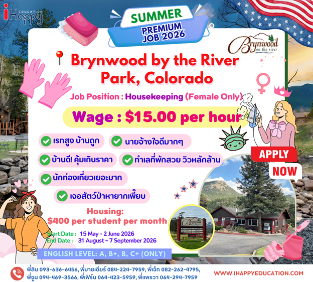 Choosing Brynwood on the River in Estes Park, Colorado for the Summer Work and Travel 2026 program is an excellent opportunity to gain experience in hospitality while surrounded by stunning mountain scenery. Participants can develop teamwork, communication, and customer service skills by working in a family-friendly, lodging environment. The location also allows students to enjoy outdoor activities like hiking, exploring Rocky Mountain National Park, and engaging in local cultural events, making it a rewarding mix of work experience and cultural exchange.