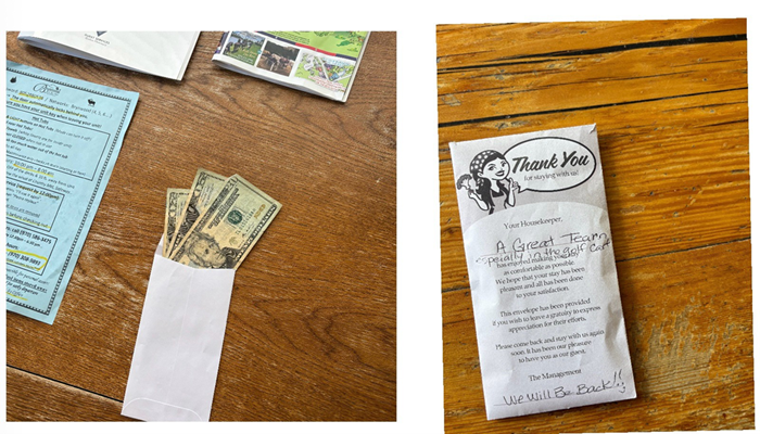 ยิ่งเราได้เปิดห้องใหม่โอกาสได้ทิปก็เยอะ เรท15.00$ต่อชม. ซึ่งก็มีข้อเสียเหมือนกันด้วยความที่เลิกงานไวก็จะได้ชม.น้อย ยิ่งถ้าวันไหนห้องที่ต้องทําน้อยก็ยิ่งเลิกไว ถ้านายจ้างไม่มีงานให้ทําต่อ ทํางาน6 วันต่อสัปดาห์ ได้เเค่หยุดเเค่วันเดียว ซึ่ง ดีเเล้วไม่งั้นตังหายยย