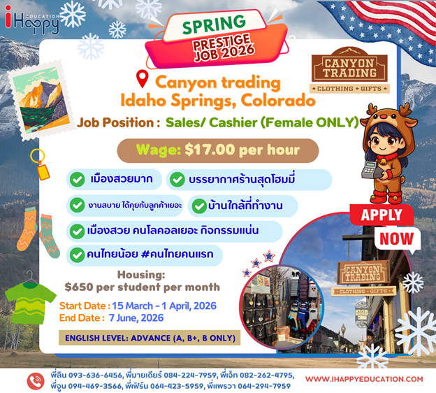 Choosing Canyon Trading in Idaho Springs, Colorado for a Work and Travel program is a great opportunity for students who want to experience working in a unique retail and souvenir shop environment. Participants can practice English while interacting with travelers from around the world, improve customer service and sales skills, and learn how to manage a busy tourist-oriented shop. Located in a historic mountain town near Denver and the Rocky Mountains, students also get the chance to enjoy local culture, explore scenic landscapes, and take part in outdoor activities, creating a balanced experience of work and cultural exchange.