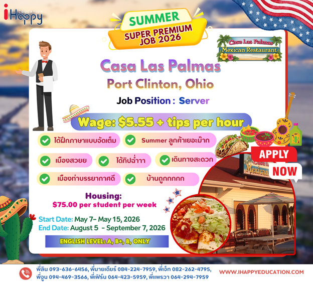 ข้อมูลข้างต้นอาจมีการเปลี่ยนแปลงขึ้นอยู่กับ US Sponsor และนายจ้างที่เข้าร่วมโครงการจากประเทศอเมริกาซึ่งทาง iHappy ไม่สามารถควบคุมได้และไม่มีส่วนได้เสียกับการเปลี่ยนแปลงใดๆ