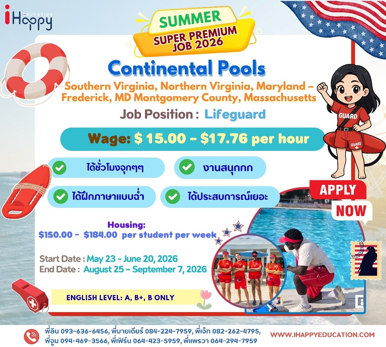 Choose Continental Pools for fun and diverse jobs, real English practice, and great support while working in Virginia, Maryland, and Massachusetts.