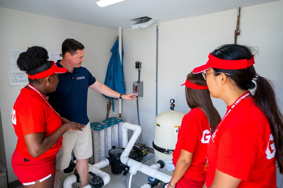 You must pass Lifeguard Certification Training or Swim Test in your home country. You are also required to pass a pool operator exam prior to or upon arrival. You will be tested regularly (and without notice) on lifesaving, CPR, and First Aid throughout the summer.