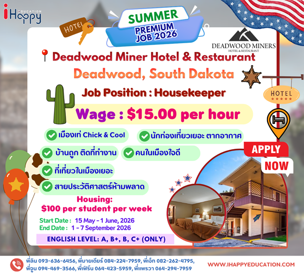 Choosing Deadwood Miner Hotel & Restaurant in Deadwood, South Dakota for the Work and Travel Program offers a valuable opportunity to gain hands-on experience in both hospitality and restaurant operations within a unique historic setting. Participants can develop strong customer service, communication, and teamwork skills while working with guests from diverse backgrounds. The combination of hotel and restaurant experience allows for well-rounded skill development in a professional environment. Located in Deadwood, a famous Old West town, participants can explore rich American history, local attractions, and cultural events, while enjoying the scenic beauty of the Black Hills, creating a perfect balance of work experience and cultural exchange.