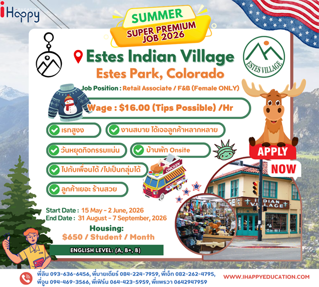 Choosing Estes Indian Village in Estes Park, Colorado for a Work and Travel program offers students a unique opportunity to gain hands-on retail and customer service experience while working in a cultural and tourist-focused environment. Students will develop communication, teamwork, and problem-solving skills as they interact with visitors from around the world. Located near Rocky Mountain National Park, this placement also provides the chance to enjoy stunning natural scenery, explore local traditions, and participate in cultural exchange, making it a rewarding balance of work and personal growth.