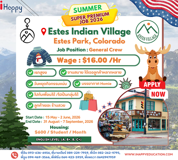Choosing Estes Indian Village in Estes Park, Colorado for a Work and Travel program offers students a unique opportunity to gain hands-on retail and customer service experience while working in a cultural and tourist-focused environment. Students will develop communication, teamwork, and problem-solving skills as they interact with visitors from around the world. Located near Rocky Mountain National Park, this placement also provides the chance to enjoy stunning natural scenery, explore local traditions, and participate in cultural exchange, making it a rewarding balance of work and personal growth.