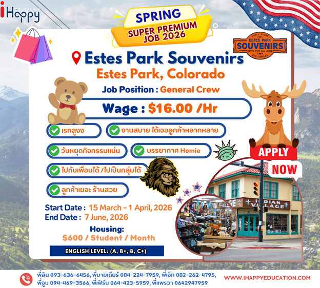 Choosing Estes Park Souvenirs in Estes Park, Colorado for a Work and Travel program is a great opportunity for students to gain valuable retail and customer service experience in a welcoming, tourist-friendly environment. Working here allows participants to practice English, build teamwork skills, and engage with visitors from around the world. With its location near Rocky Mountain National Park, students can also enjoy breathtaking nature, outdoor activities, and local cultural events, making it a rewarding experience that combines professional development with cultural exchange.