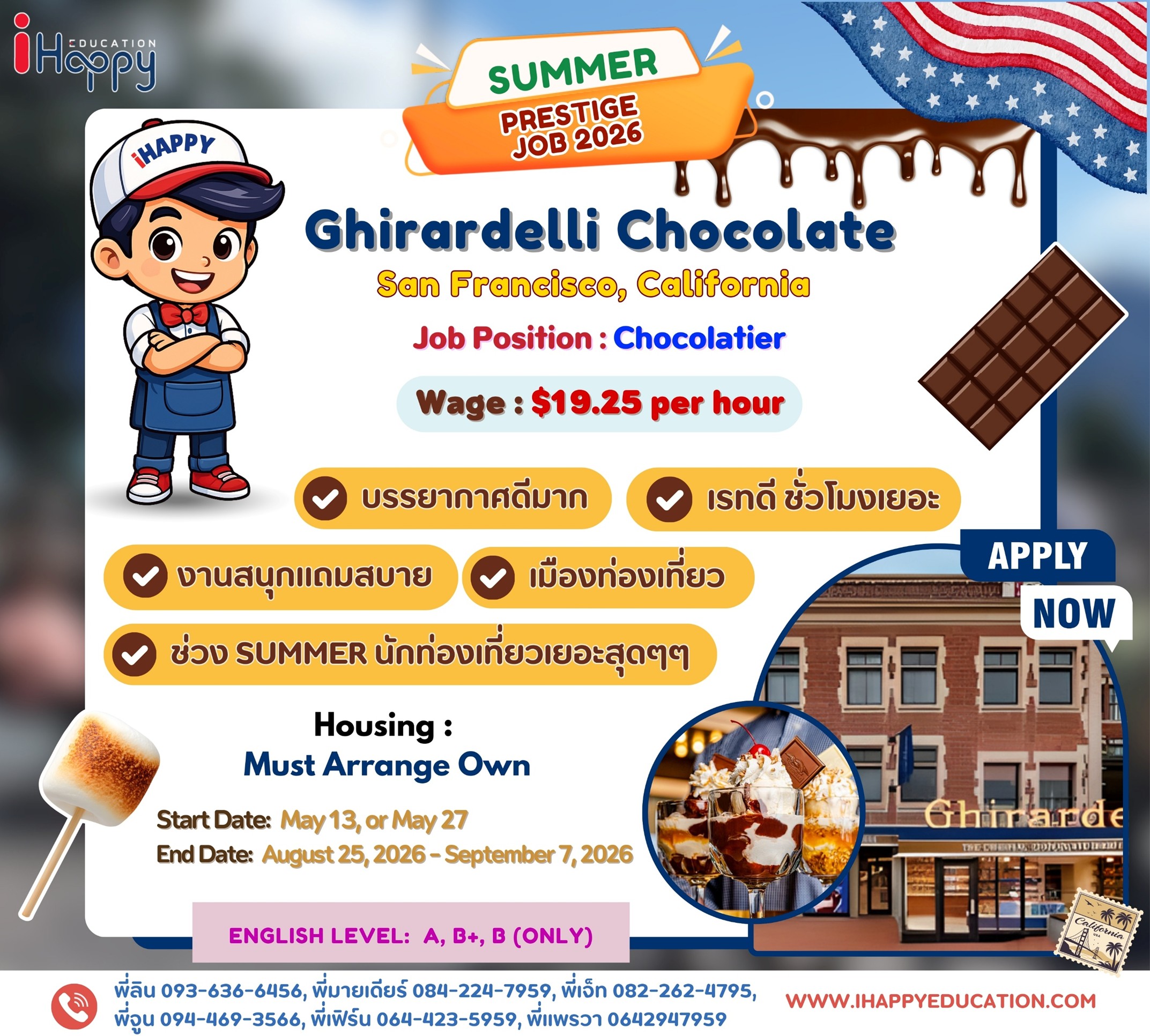 This position is ideal for participants who enjoy physical work, customer interaction, and a team-based environment. Flexibility and reliability are critical to success at Ghirardelli San Francisco.