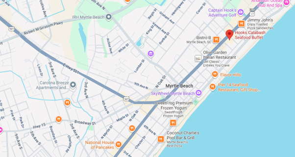 Hooks Calabash Seafood is an all-you-can-eat seafood buffet located in Myrtle Beach, South Carolina. They have a large buffet with a variety of seafood options that the entire family will want to indulge in while visiting Myrtle Beach! The atmosphere at Hooks Calabash Seafood is beachy and fun, a perfect spot to cap off a day by the sea. Hooks features more than 100 items on their buffet, including plenty of seafood and “land food” options. Seafood lovers can get their fill of crab legs; fried, steamed, or broiled shrimp; fried or steamed oysters; fried scallops; fried flounder; crab cakes; mahi and more. You can also get chicken — fried, grilled or BBQ-style — along with BBQ pork, prime rib and steaks. We are a family-oriented city that comes alive in the night with amazing beach during the day and a summer season of fun so come enjoy it with us!