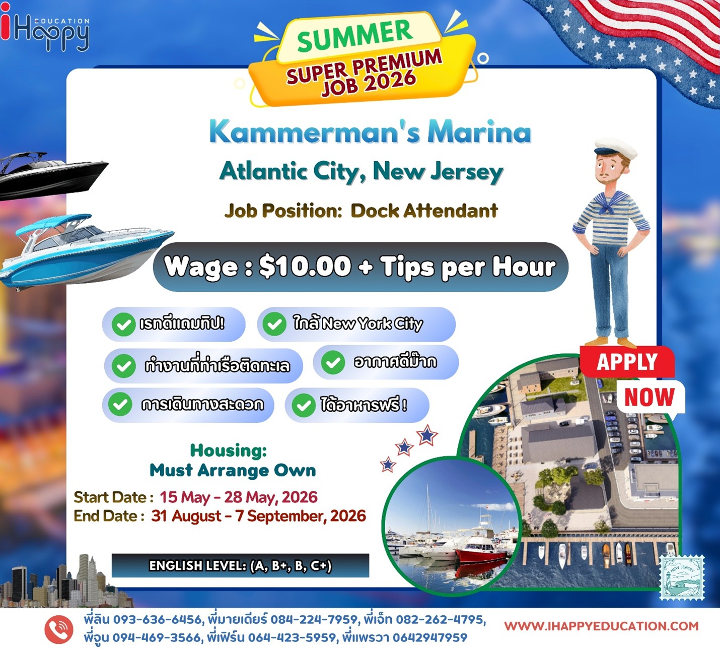 ข้อมูลข้างต้นอาจมีการเปลี่ยนแปลงขึ้นอยู่กับ US Sponsor และนายจ้างที่เข้าร่วมโครงการจากประเทศอเมริกาซึ่งทาง iHappy ไม่สามารถควบคุมได้และไม่มีส่วนได้เสียกับการเปลี่ยนแปลงใดๆ