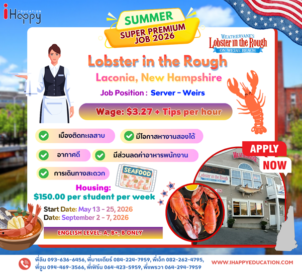 Lobster in the Rough is a classic New England restaurant with multiple locations in Maine and New Hampshire. They have employed Work and Travel participants for almost 20 years.
