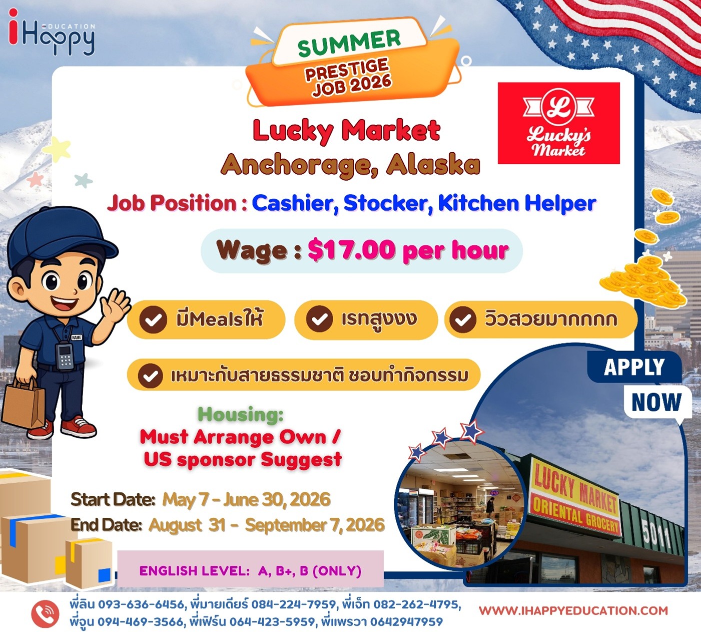 ข้อมูลข้างต้นอาจมีการเปลี่ยนแปลงขึ้นอยู่กับ US Sponsor และนายจ้างที่เข้าร่วมโครงการจากประเทศอเมริกาซึ่งทาง iHappy ไม่สามารถควบคุมได้และไม่มีส่วนได้เสียกับการเปลี่ยนแปลงใดๆ