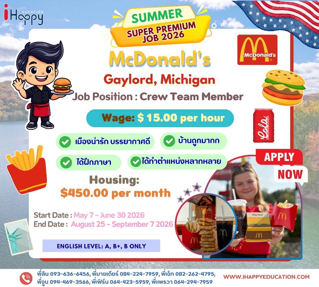 ข้อมูลข้างต้นอาจมีการเปลี่ยนแปลงขึ้นอยู่กับ US Sponsor และนายจ้างที่เข้าร่วมโครงการจากประเทศอเมริกาซึ่งทาง iHappy ไม่สามารถควบคุมได้และไม่มีส่วนได้เสียกับการเปลี่ยนแปลงใดๆ