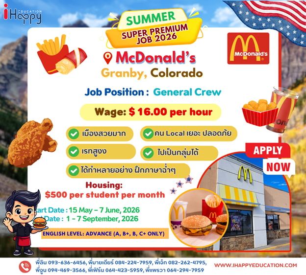 Choosing McDonald’s in Granby, Colorado for the Work and Travel Program offers a great opportunity to gain hands-on experience in a fast-paced and structured work environment while developing essential skills such as customer service, teamwork, time management, and responsibility. As a global brand, McDonald’s provides standardized training and clear systems that help participants quickly adapt and perform efficiently. Working in Granby, a charming mountain town near popular outdoor destinations, also allows participants to interact with both locals and tourists, improve their English communication skills, and experience authentic American culture, creating a well-rounded and rewarding Work and Travel experience.