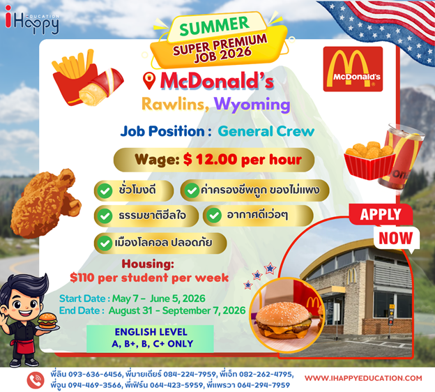 Choosing McDonald’s in Rawlins, Wyoming for the Work & Travel Program offers students a valuable opportunity to gain experience with a globally recognized brand while living in an authentic small-town American community. Working at McDonald’s provides structured training, clear job roles, and consistent work hours, helping participants build confidence in English communication, teamwork, and customer service skills. Living and working in Rawlins allows students to experience everyday American life, interact closely with local residents and travelers, and participate in cultural exchange in a safe, supportive environment, making it a meaningful and practical Work & Travel experience.