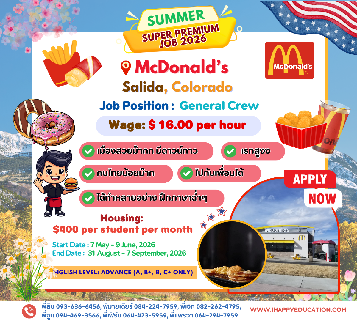 Choosing McDonald’s in Salida, Colorado for the Work and Travel Summer 2026 program gives students the opportunity to work in a welcoming and dynamic environment while gaining experience with a globally recognized brand. At McDonald’s Salida, participants can strengthen customer service, communication, and teamwork skills—valuable abilities that translate to any future career. Salida is known for its vibrant arts scene, friendly community, and beautiful natural surroundings. Located along the Arkansas River and surrounded by mountains, the town offers a perfect blend of outdoor adventure and small-town charm. Students can improve their English, build confidence, and enjoy meaningful cultural interactions—all while living in one of Colorado’s most scenic and lively mountain communities.