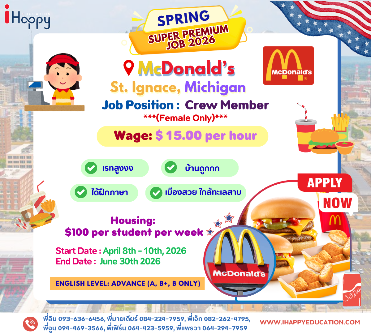 ข้อมูลข้างต้นอาจมีการเปลี่ยนแปลงขึ้นอยู่กับ US Sponsor และนายจ้างที่เข้าร่วมโครงการจากประเทศอเมริกาซึ่งทาง iHappy ไม่สามารถควบคุมได้และไม่มีส่วนได้เสียกับการเปลี่ยนแปลงใดๆ