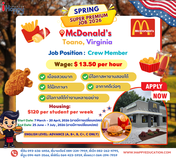 ข้อมูลข้างต้นอาจมีการเปลี่ยนแปลงขึ้นอยู่กับ US Sponsor และนายจ้างที่เข้าร่วมโครงการจากประเทศอเมริกาซึ่งทาง iHappy ไม่สามารถควบคุมได้และไม่มีส่วนได้เสียกับการเปลี่ยนแปลงใดๆ