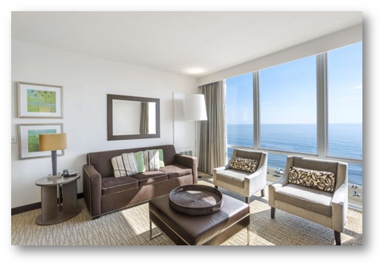 State Park. The airy rooms feature free Wi-Fi, flat-screen TVs and DVD players, plus kitchenettes and balconies. Suites add living rooms with pull-out sofas and full kitchens. In addition to a seasonal cafe and a tiki bar, amenities include 4 oceanfront pools (including 1 kids’ pool and an adults-only infinity pool), laundry facilities, a business center and conference rooms. There’s also a 17th-floor fitness center with ocean views.
