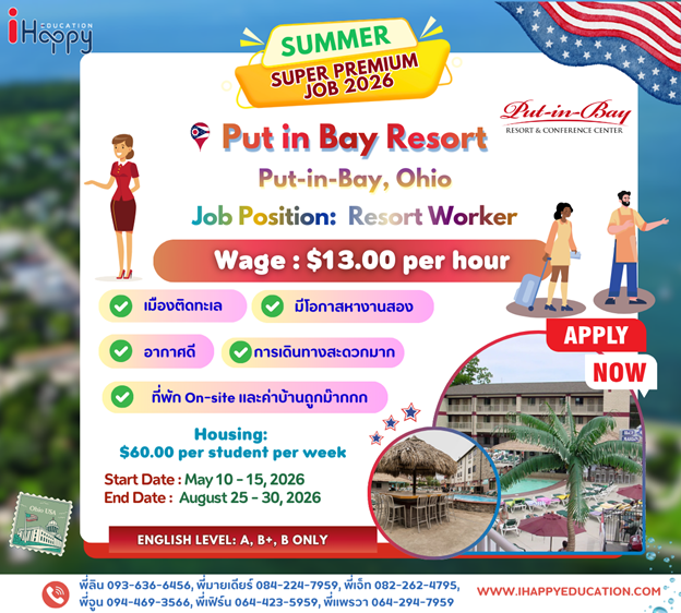 Choosing Put-in-Bay Resort in Ohio for a Work and Travel program is a great opportunity for students to gain hands-on experience in hospitality, customer service, and teamwork in a well-known lakeside resort. Participants can improve their English by interacting with international guests, work in a fast-paced yet supportive environment, and develop professional skills in hotel and resort operations. Located on South Bass Island on Lake Erie, Put-in-Bay offers a vibrant tourist atmosphere, beautiful waterfront views, and many cultural exchange opportunities, making it an ideal place for students to work, learn, and enjoy American island life.