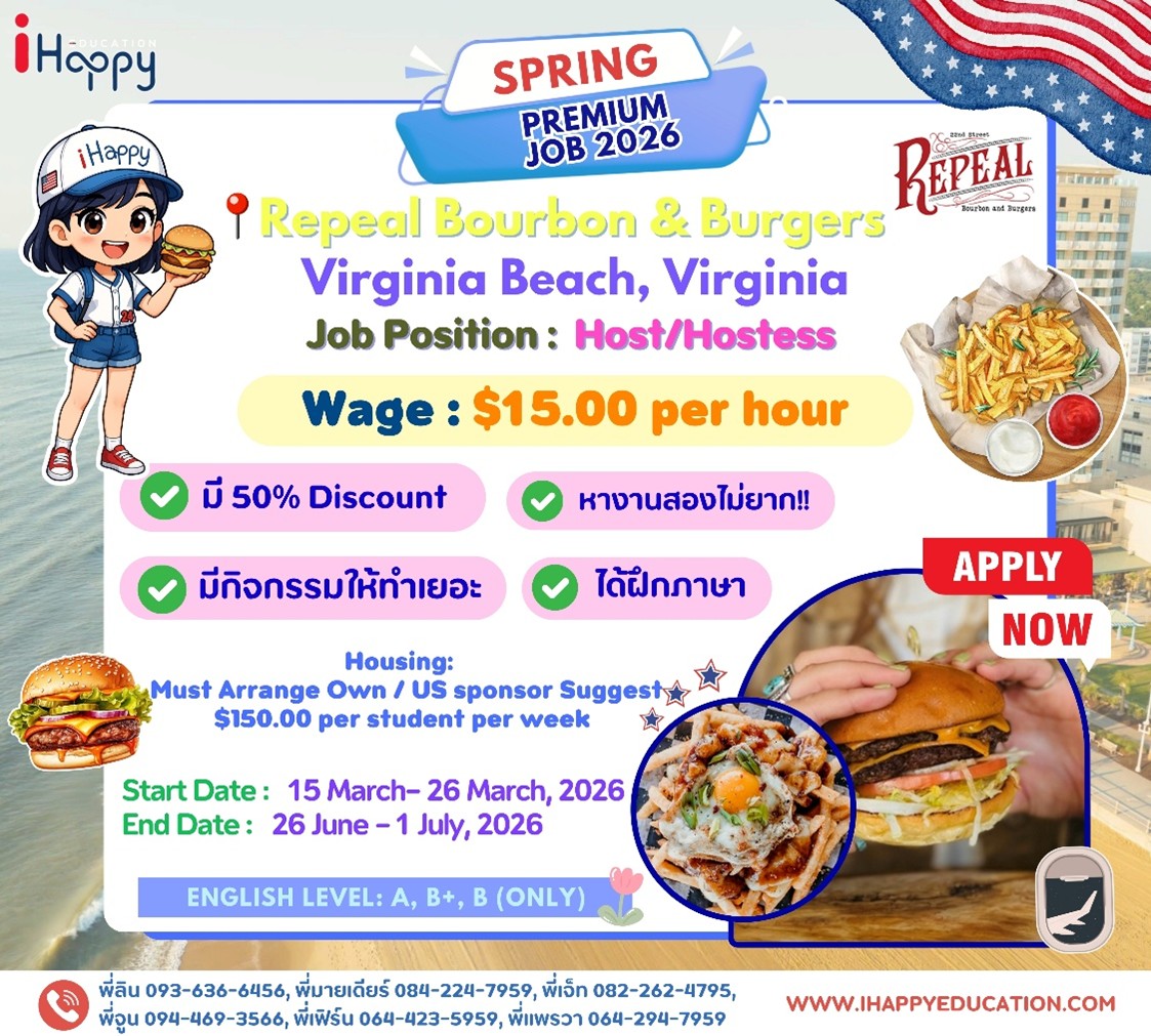 ข้อมูลข้างต้นอาจมีการเปลี่ยนแปลงขึ้นอยู่กับ US Sponsor และนายจ้างที่เข้าร่วมโครงการจากประเทศอเมริกาซึ่งทาง iHappy ไม่สามารถควบคุมได้และไม่มีส่วนได้เสียกับการเปลี่ยนแปลงใดๆ