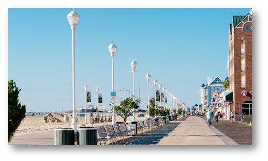 Ocean City is a resort town on the East coast of Maryland. Population of Approximately 500,000 during a summer weekend. The town features miles of beach, restaurants, shops, and outdoor activities.