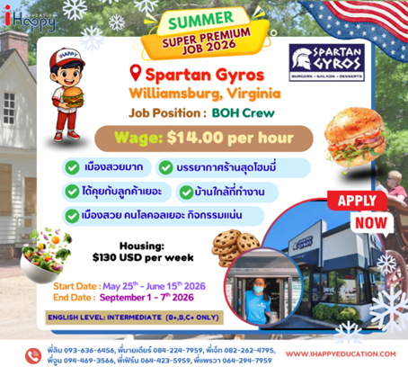ข้อมูลข้างต้นอาจมีการเปลี่ยนแปลงขึ้นอยู่กับ US Sponsor และนายจ้างที่เข้าร่วมโครงการจากประเทศอเมริกาซึ่งทาง iHappy ไม่สามารถควบคุมได้และไม่มีส่วนได้เสียกับการเปลี่ยนแปลงใดๆ