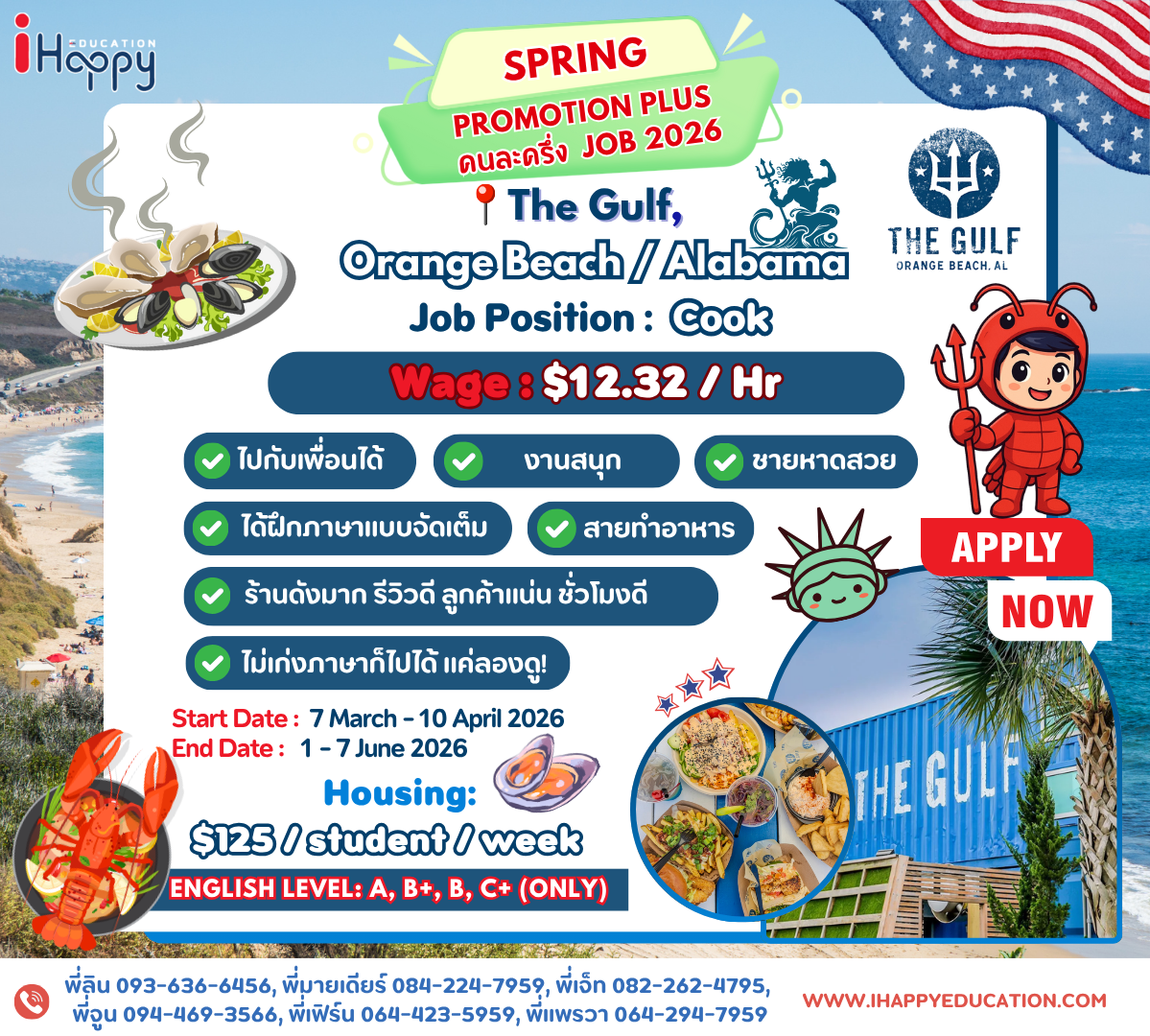 Choosing The Gulf Restaurant in Orange Beach offers both job experience and cultural exchange in a beautiful coastal setting. With its unique open-air design, focus on fresh local seafood, and eco-friendly practices, students gain valuable customer service and teamwork skills while interacting with diverse guests. Outside of work, the location provides the chance to enjoy beach life, sunsets, and Gulf Coast culture, making it a rewarding and memorable experience.