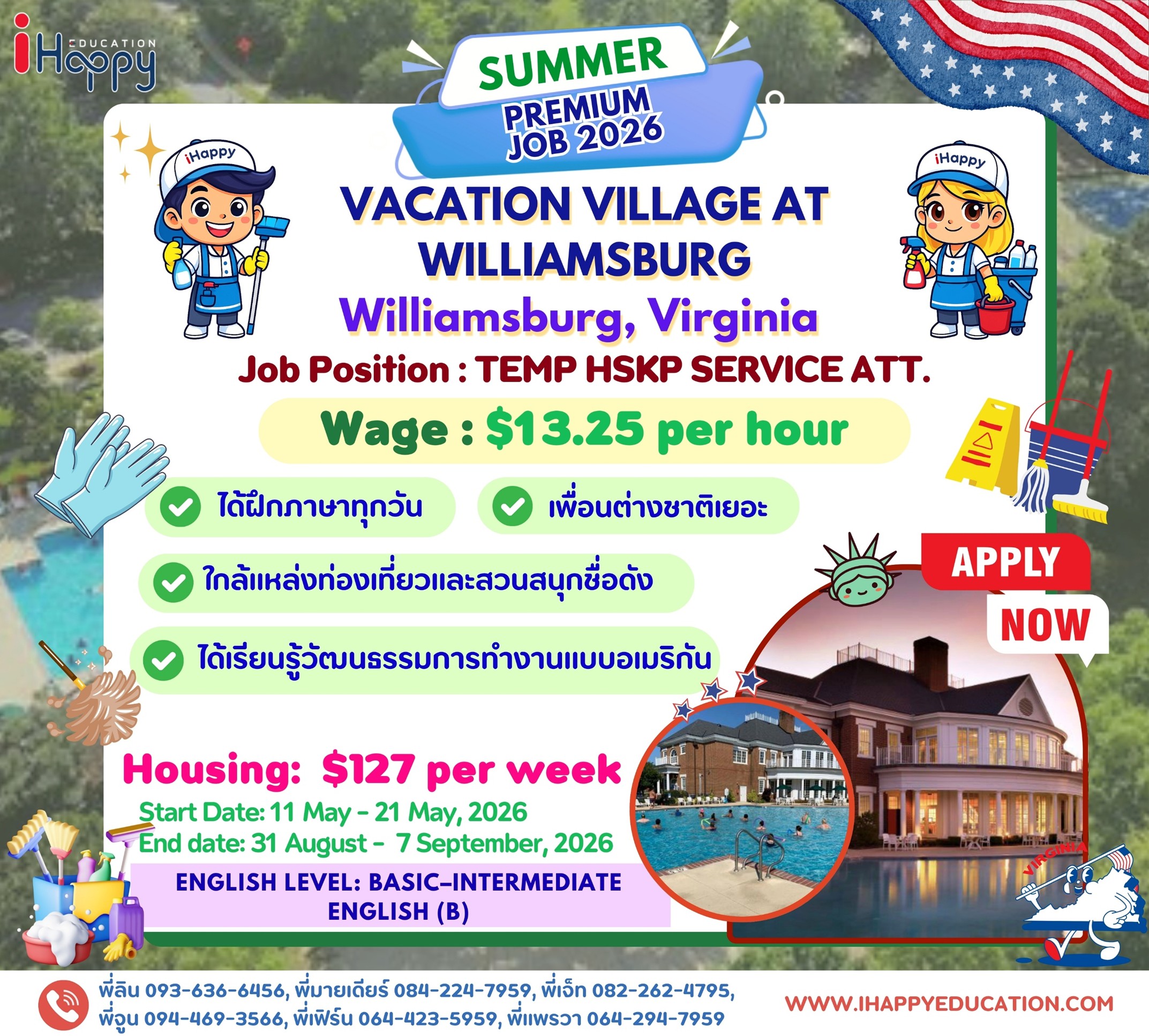 ข้อมูลข้างต้นอาจมีการเปลี่ยนแปลงขึ้นอยู่กับ US Sponsor และนายจ้างที่เข้าร่วมโครงการจากประเทศอเมริกาซึ่งทาง iHappy ไม่สามารถควบคุมได้และไม่มีส่วนได้เสียกับการเปลี่ยนแปลงใดๆ