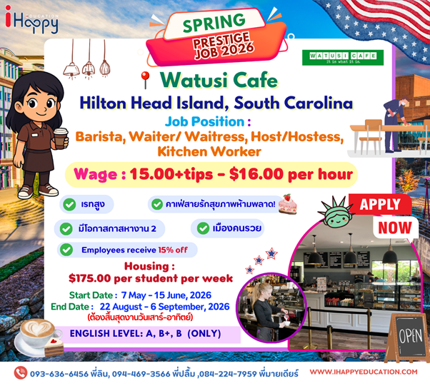 ข้อมูลข้างต้นอาจมีการเปลี่ยนแปลงขึ้นอยู่กับ US Sponsor และนายจ้างที่เข้าร่วมโครงการจากประเทศอเมริกาซึ่งทาง iHappy ไม่สามารถควบคุมได้และไม่มีส่วนได้เสียกับการเปลี่ยนแปลงใดๆ